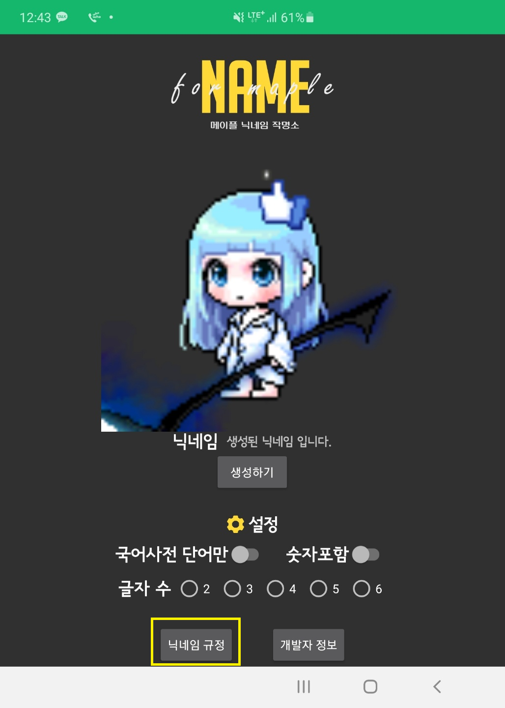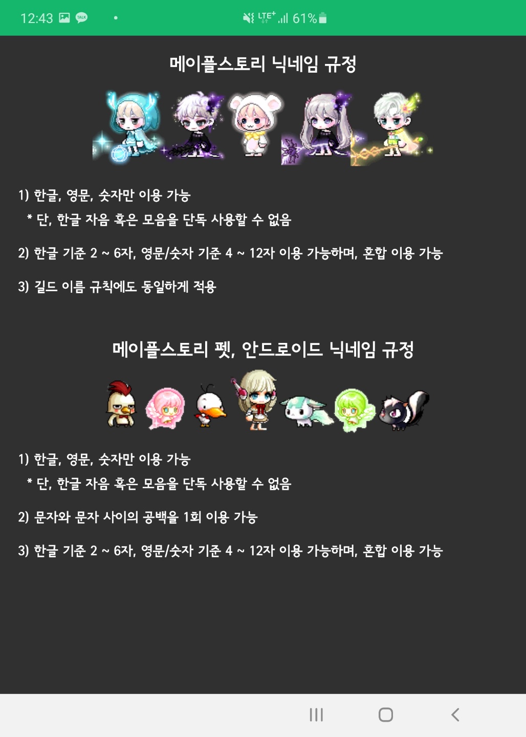 닉네임 규정 버튼을 클릭하면 이렇게 닉네임규정 화면으로 넘어가게 되었습니다.