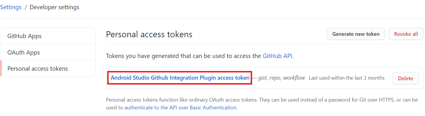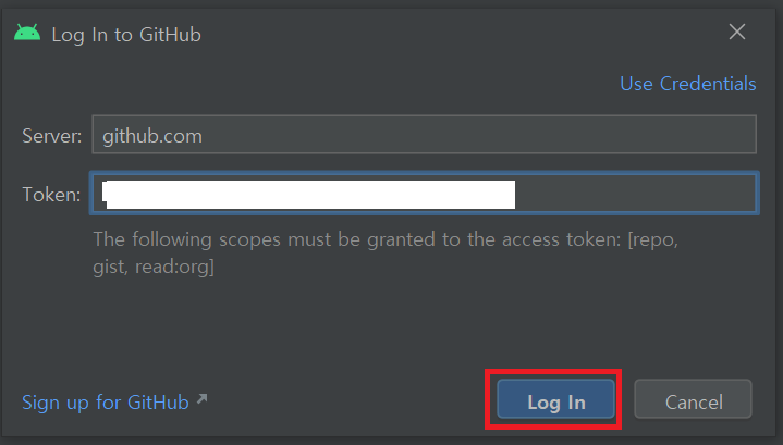 토큰 값을 안드로이드 스튜디오의 깃허브 로그인 하는 부분에 붙혀줍니다.
