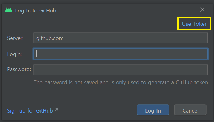 토큰 값을 안드로이드 스튜디오의 깃허브 로그인 하는 부분에 붙혀줍니다.