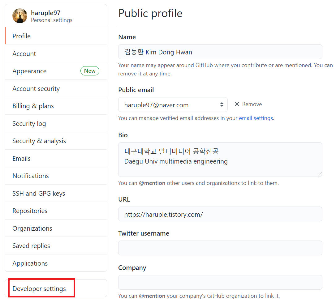 Developer settings 를 클릭합니다.