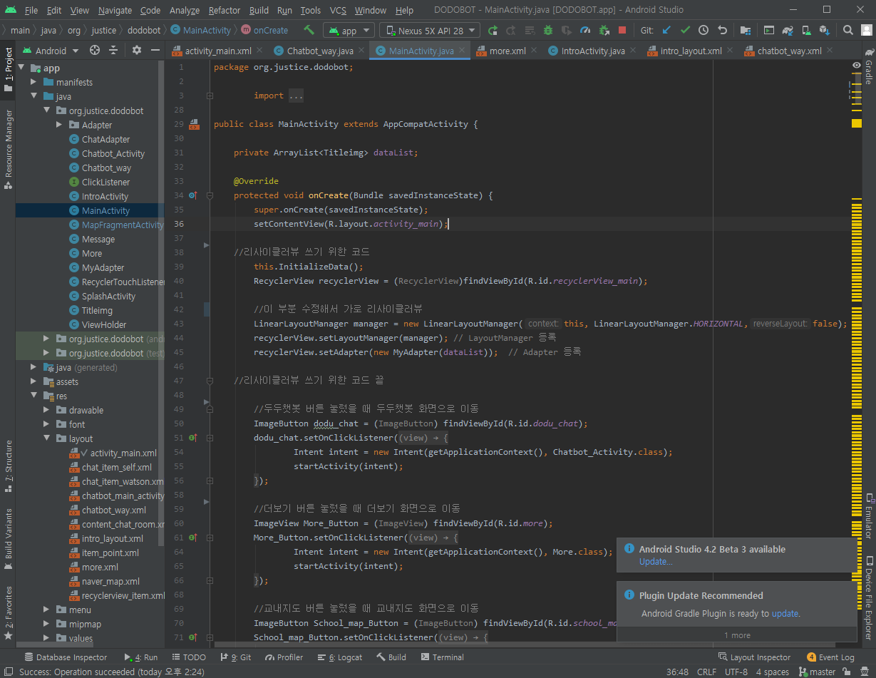 안드로이드 스튜디오 '다크모드' 그럼 이렇게 눈이 편안한 다크모드로 코딩할 수 있습니다😊😁