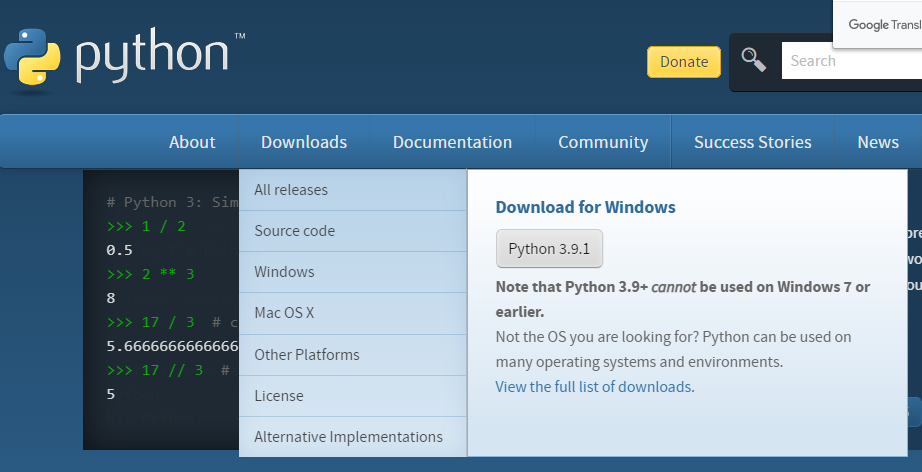 파이썬 홈페이지에서 Download - Windows 에서 파이썬을 다운로드 받습니다.