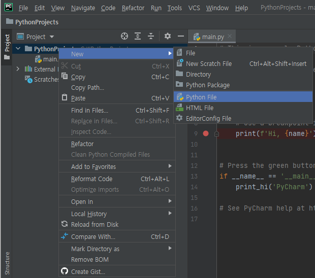 원하는 파일이름을 입력하고 Enter 하면 파이썬파일이 생성됩니다.