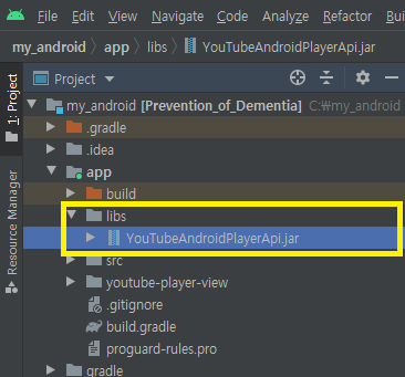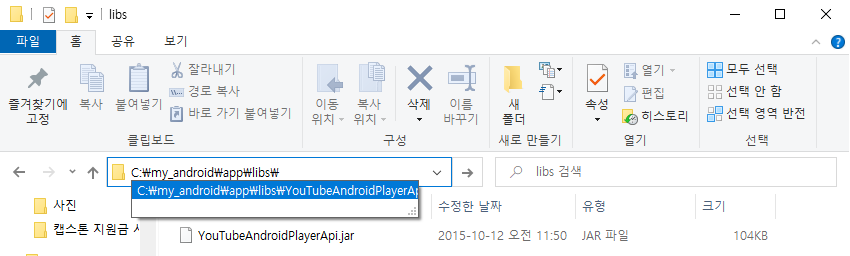 이후 Project - app - libs 에 붙여넣습니다.