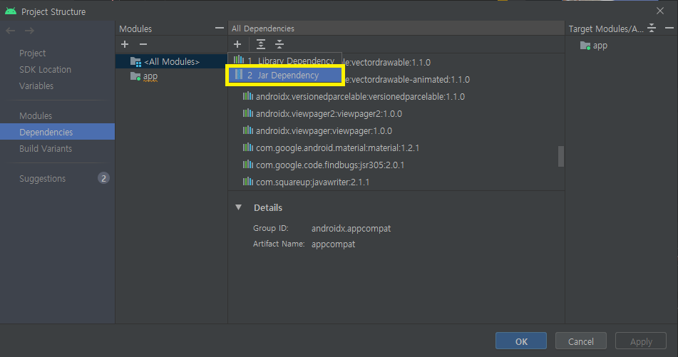 Dependencies - (+)플러스 기호 - Jar Dependency