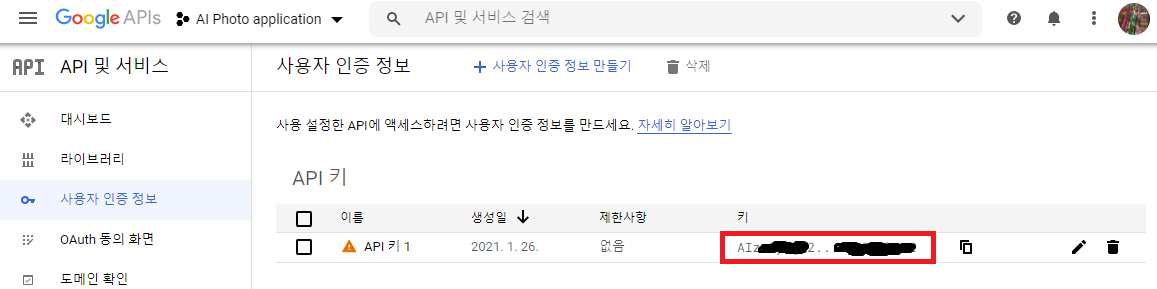 먼저, 구글 클라우드 플랫폼에서 API키를 발급받습니다.