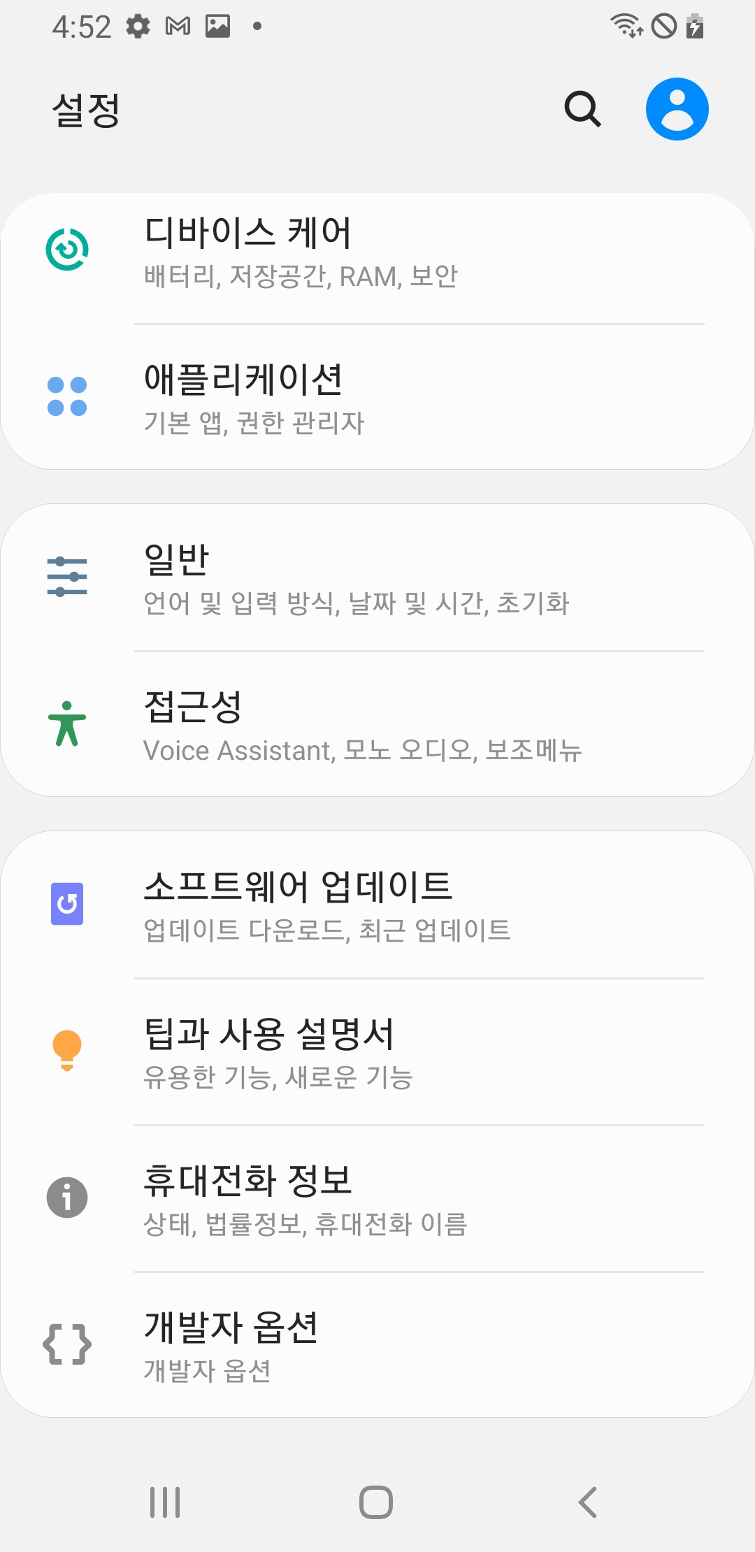 빌드번호를 연타하면 개발자 모드가 활성화 됩니다.