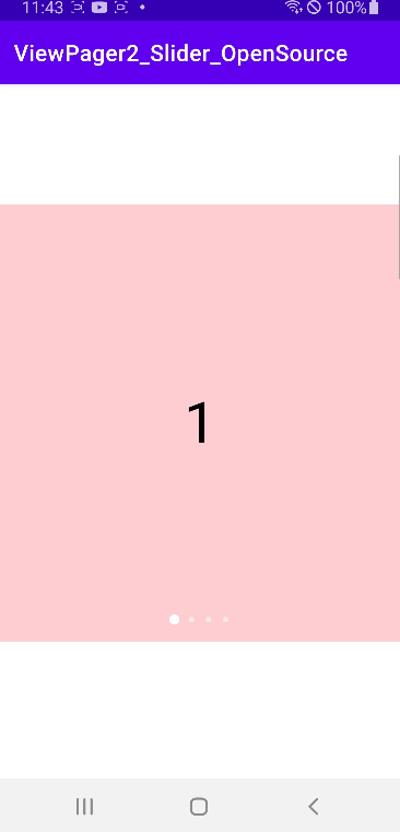 public class MainActivity extends AppCompatActivity { private ViewPager2 mPager; private FragmentStateAdapter pagerAdapter; private int num_page = 4; private CircleIndicator3 mIndicator; @Override protected void onCreate(Bundle savedInstanceState) { super.onCreate(savedInstanceState); setContentView(R.layout.activity_main); /** * 가로 슬라이드 뷰 Fragment */ //ViewPager2 mPager = findViewById(R.id.viewpager); //Adapter pagerAdapter = new MyAdapter(this, num_page); mPager.setAdapter(pagerAdapter); //Indicator mIndicator = findViewById(R.id.indicator); mIndicator.setViewPager(mPager); mIndicator.createIndicators(num_page,0); //ViewPager Setting mPager.setOrientation(ViewPager2.ORIENTATION_HORIZONTAL); /** * 이 부분 조정하여 처음 시작하는 이미지 설정. * 2000장 생성하였으니 현재위치 1002로 설정하여 * 좌 우로 슬라이딩 할 수 있게 함. 거의 무한대로 */ mPager.setCurrentItem(1000); //시작 지점 mPager.setOffscreenPageLimit(4); //최대 이미지 수 mPager.registerOnPageChangeCallback(new ViewPager2.OnPageChangeCallback() { @Override public void onPageScrolled(int position, float positionOffset, int positionOffsetPixels) { super.onPageScrolled(position, positionOffset, positionOffsetPixels); if (positionOffsetPixels == 0) { mPager.setCurrentItem(position); } } @Override public void onPageSelected(int position) { super.onPageSelected(position); mIndicator.animatePageSelected(position%num_page); } }); } }여기서 Circleindicator의 위치를 이미지의 위치와 동일하게 설정합니다.