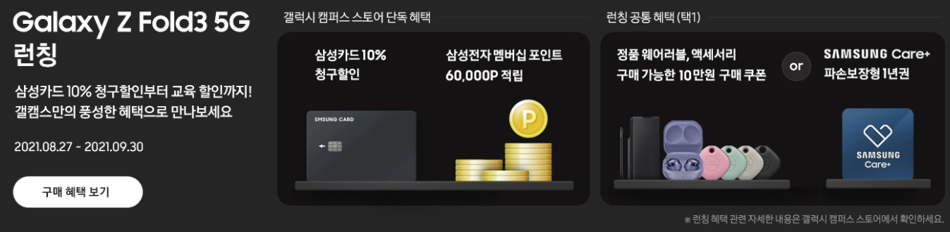 갤럭시 캠퍼스 스토어 구매혜택 거기다 갤캠스 혜택으로 삼성케어 플러스도 줍니다!