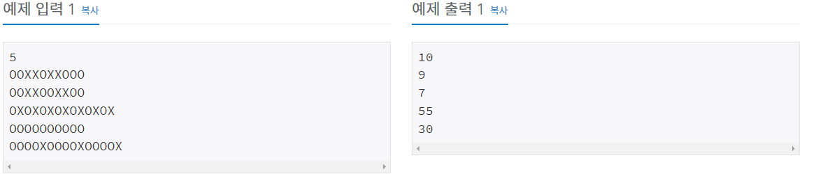 "OOXXOXXOOO"의 점수는 1+2+0+0+1+0+0+1+2+3 = 10점이다.