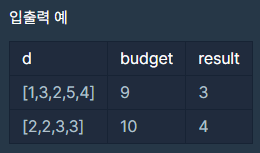 프로그래머스 1단계 문제 예산 풀이입니다.