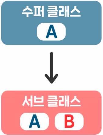 여기서 속성과 함수를 물려주는 쪽을 수퍼 클래스, 물려 받는 쪽을 서브 클래스라고 부른다.