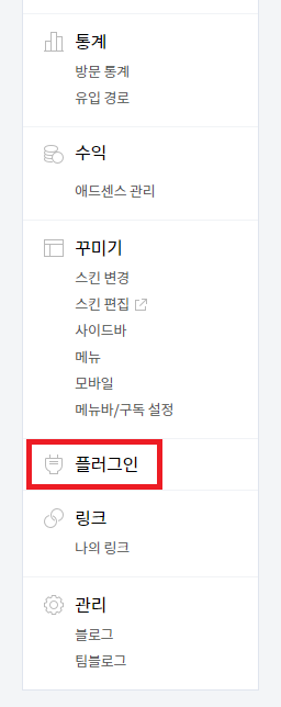 1. 블로그 관리 페이지에서 플러그인을 클릭합니다.