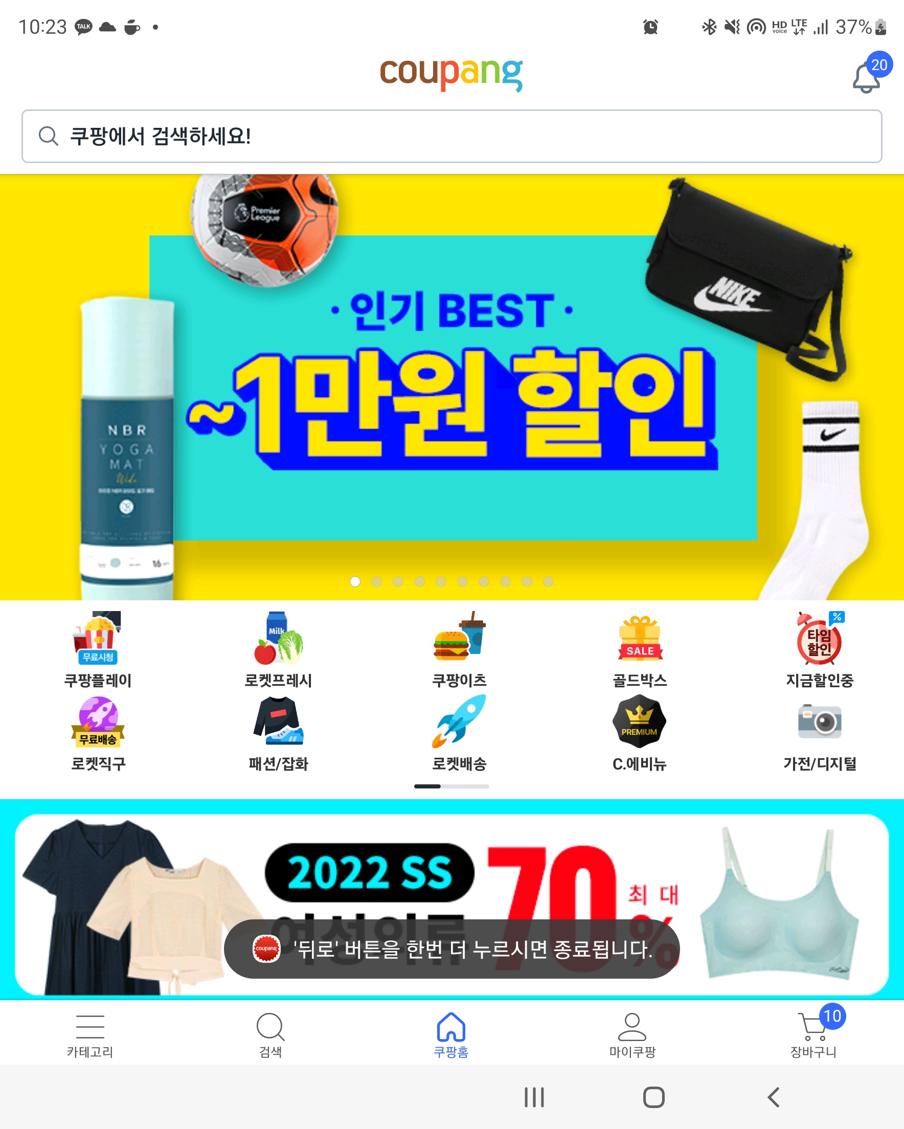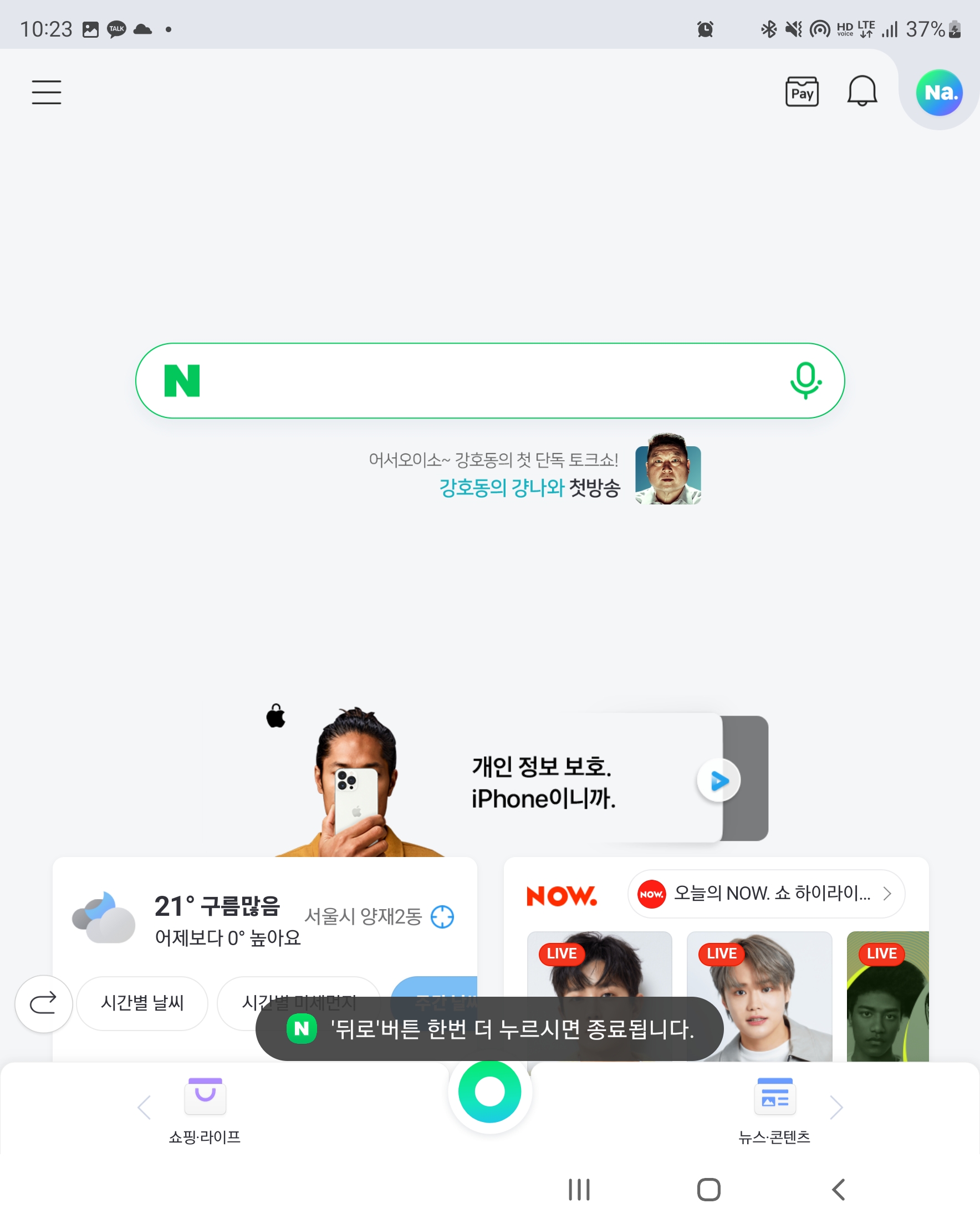 네이버, 쿠팡, 넥슨플레이 앱의 뒤로가기 편의 기능 해당 기능은 유명한 기업의 앱에서도 빈번히 사용되는 편의 기능이라 어떤식으로 작동하는지 알고 적용하면 좋습니다 😀