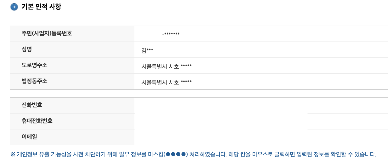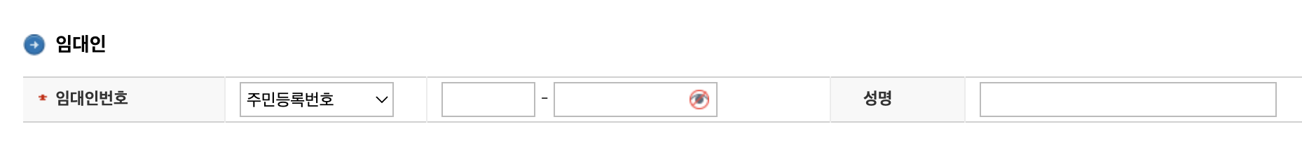 임대 계약서를 확인하면 임대인의 정보가 나와있습니다. 계약서에 적혀있는 대로 임대인 정보를 입력해주세요.