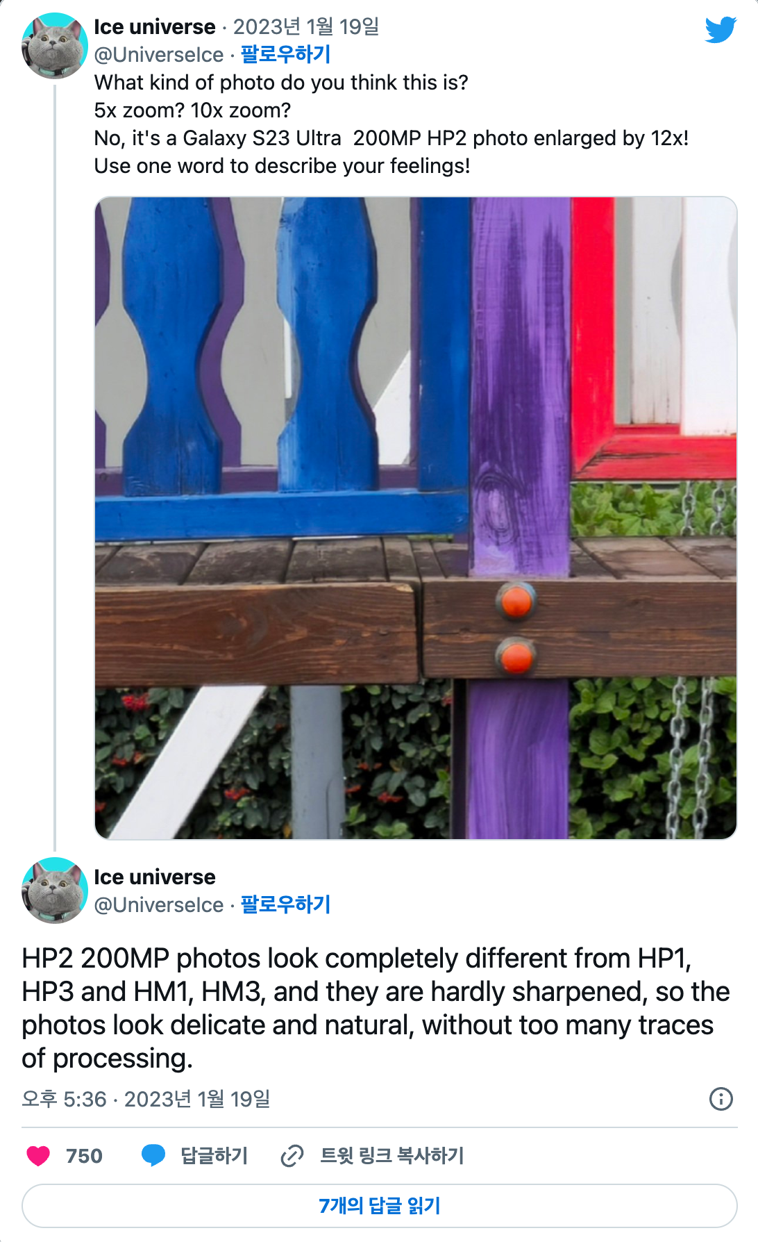 울트라 모델 한정으로 2억 화소 카메라가 들어간다고 합니다. Ice universe에서 유출한 2억화소로 찍고 12배 확대한 사진인데 엄청 선명해보입니다! 다른 경쟁사들도 센서 사이즈를 많이 키워서 갤럭시 카메라를 많이 따라잡았었는데 이번에 갤럭시가 얼마나 격차를 벌려낼지 기대되네요! 폴드에도 2억화소 카메라가 적용되면 좋겠습니다..