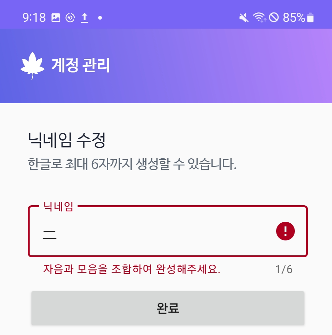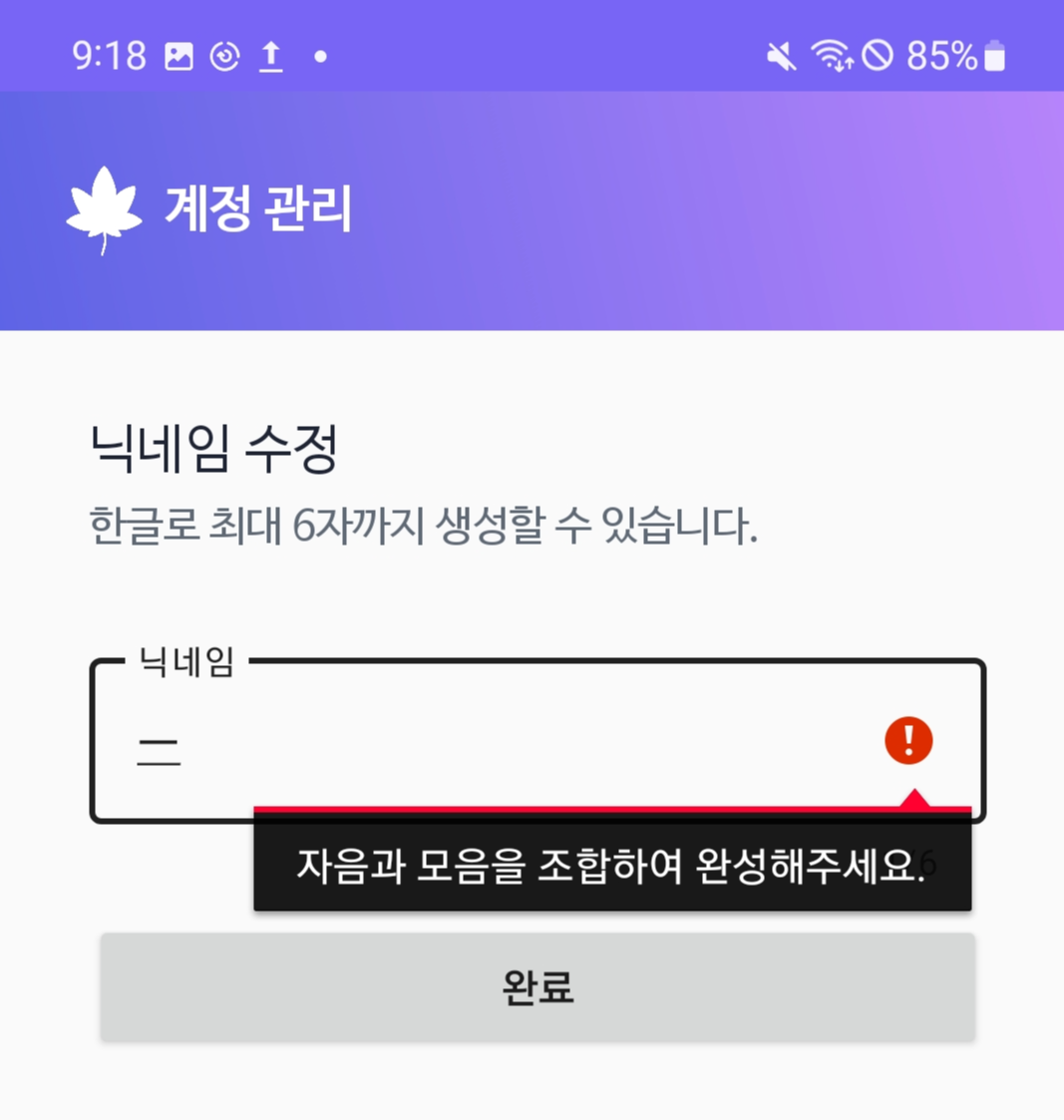 binding.etNickName.error = "자음과 모음을 조합해주세요"그러자