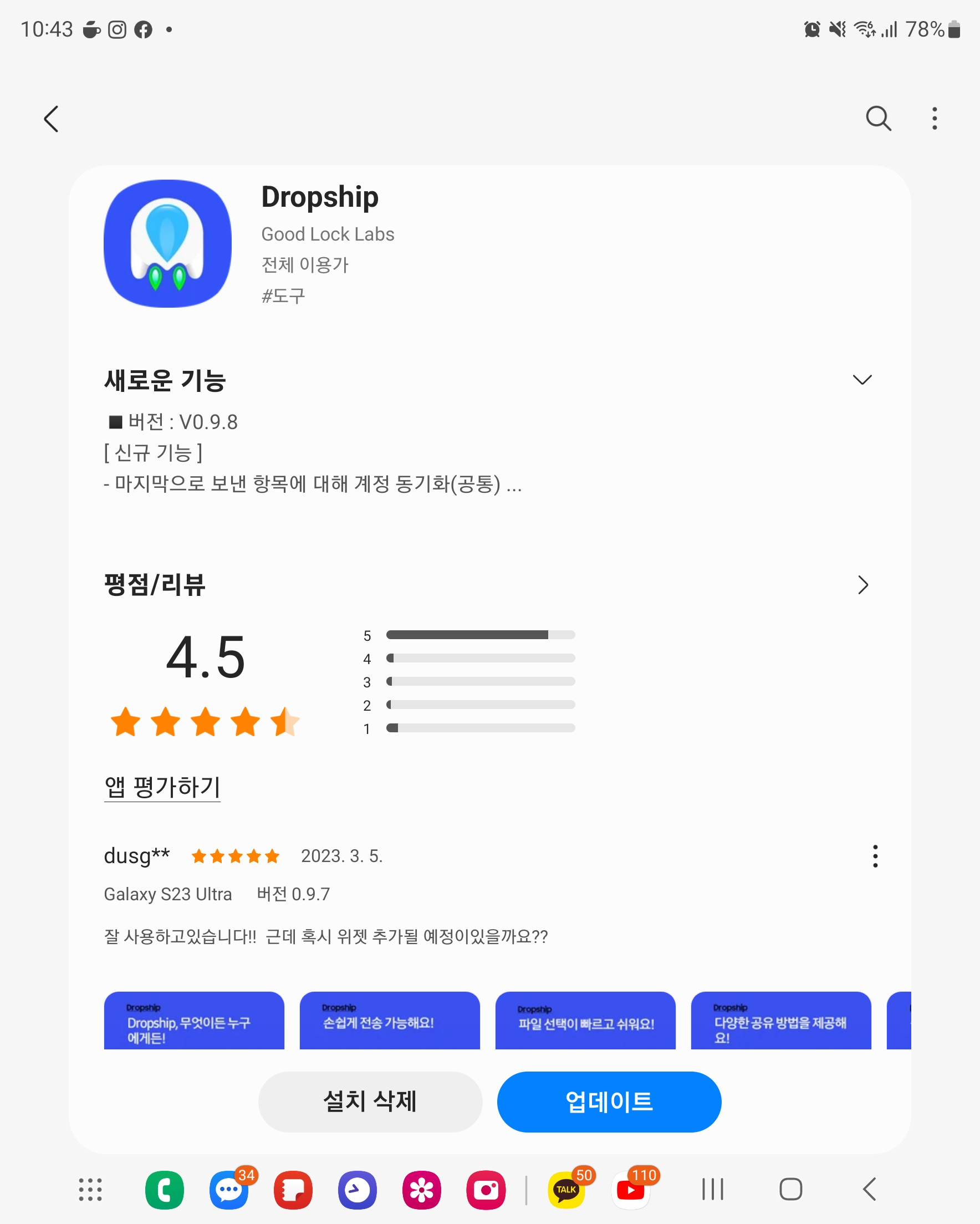 먼저 갤럭시 스토어에서 Dropship을 다운로드합니다.